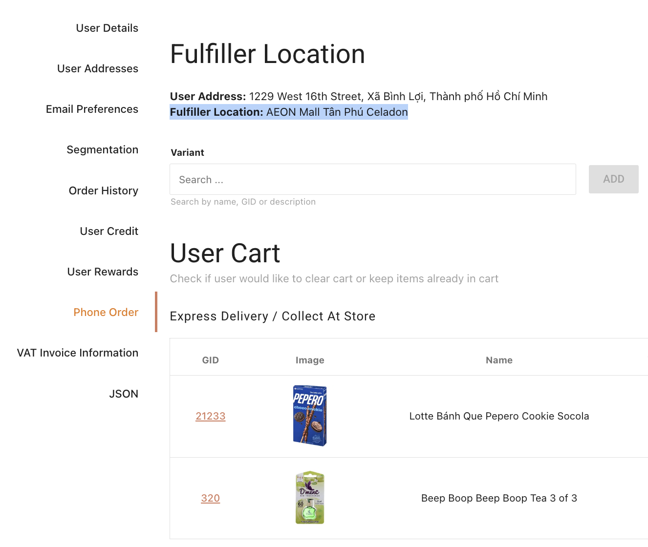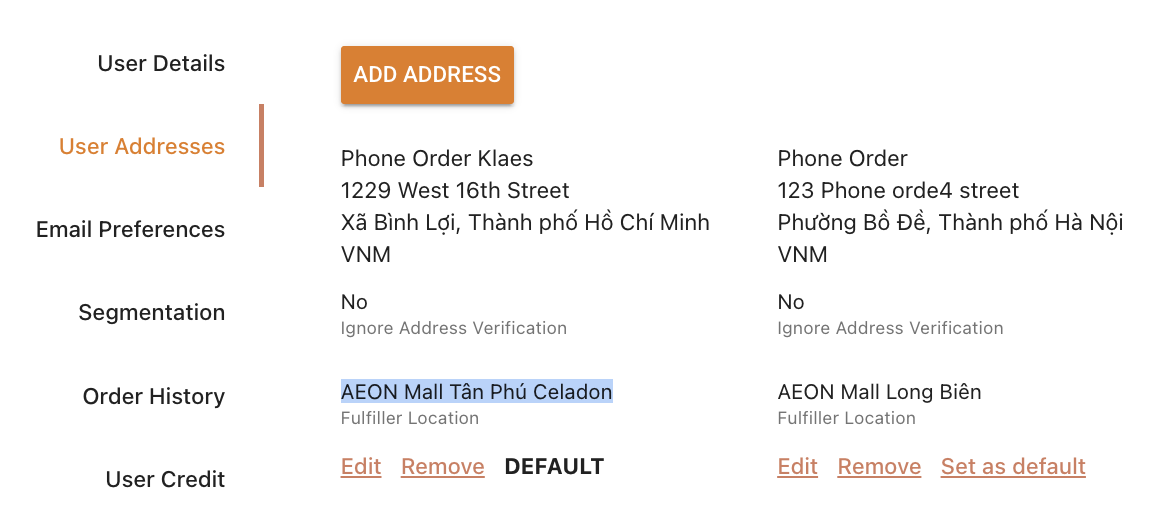 Stores(i.e. select your store). This is so that the copy supports both malls & supermarkets. - System Language: In the Spresso System, each "Store" or "Mall" (i.e. AEON Mall Long Biên) is set up as a Fulfiller Location. For that reason, in the Foxtrot Admin Console, stores/malls may be referred to as Fulfiller Locations.