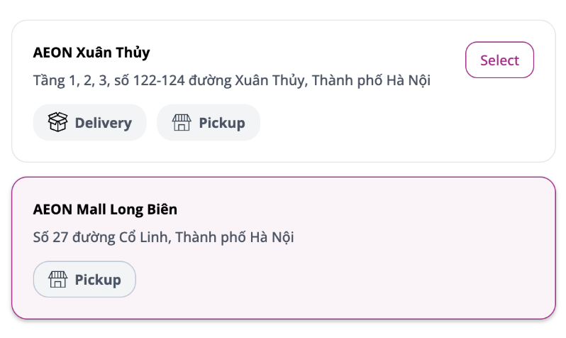 - This feature allows one location identifier (i.e. city/ward or postal code) to be mapped to multiple Fulfiller Locations (i.e. a store, mall, or supermarket) and for the user to select the store they want to shop.