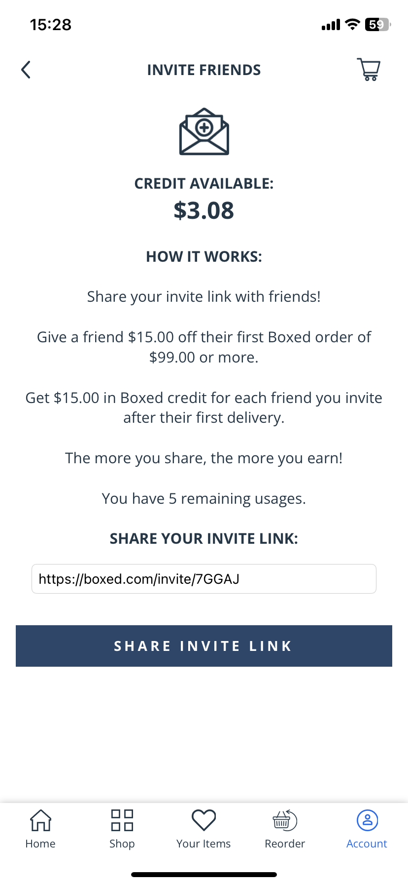 - The referrer can find their personal invite link and code for sharing on their account page after their first order is complete.